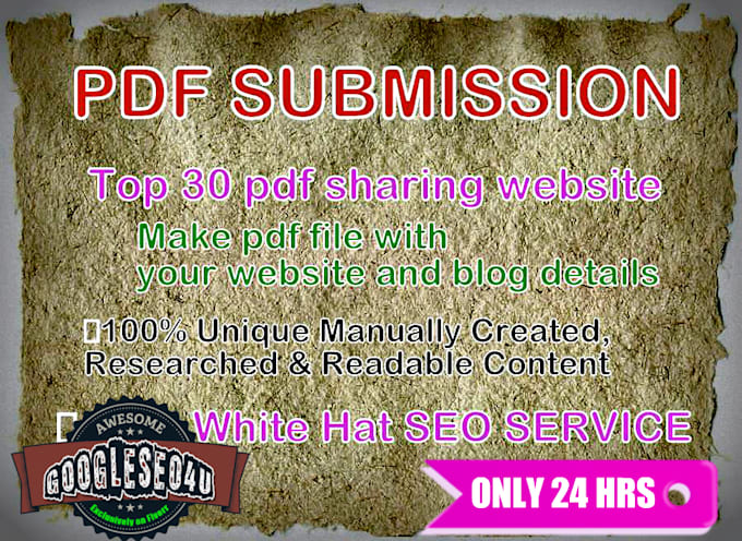 I will do best PDF submissions to 30 document sharing sites in 24 hrs