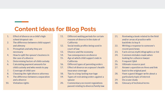 - Review your current content and help you come up with a content strategy for published posts on your website, blog, etc.